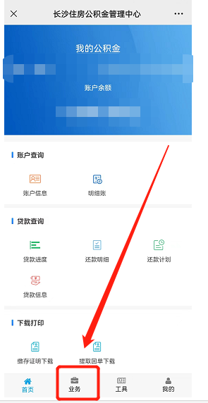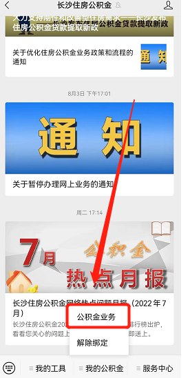 第二步:菜单栏点击【我的公积金】→【公积金业务】