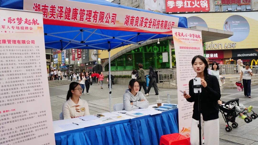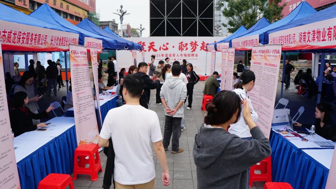 2025年9月26日下午,黄兴路步行街黄兴广场迎来一抹亮眼的“迷彩绿”,与象征希望的“就业红”交相辉映——“才聚天心,职梦起航”2025天心区退役军人专场招聘会在此火热启幕。本次活动由天心区人社局、区退役军人事务局联合主办,以专属化服务与场景化体验为核心,为退役军人打造就业“绿色通道”,助力他们从军营到职场的平稳转型。