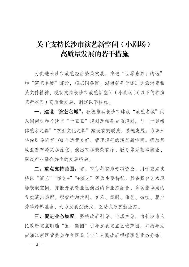 长沙市人民政府 湖南省文化和旅游厅 印发《关于支持长沙市演艺新空间(小剧场) 高质量发展的若干措施》的通知
