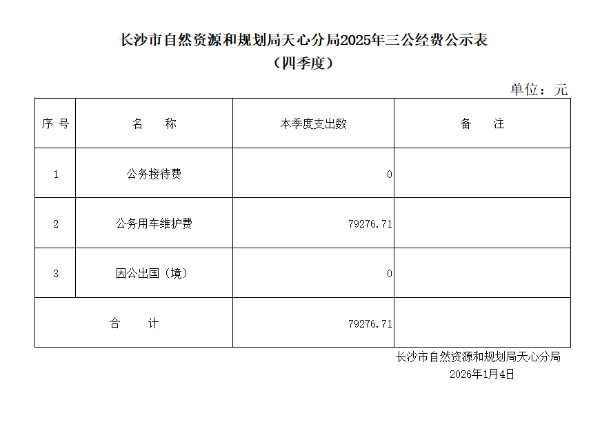 长沙市自然资源和规划局天心分局2025年三公经费公示表(四季度)