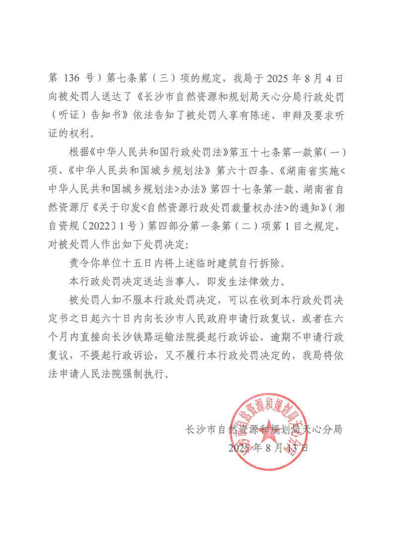 天资规罚决[2025]1号(省木材公司过期临建未拆除)